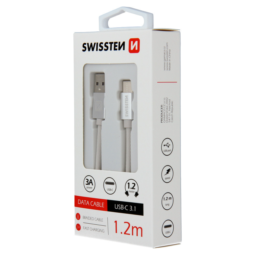 SWISSTEN Type-C adatkábel - 3A - 120cm - ezüst/fehér