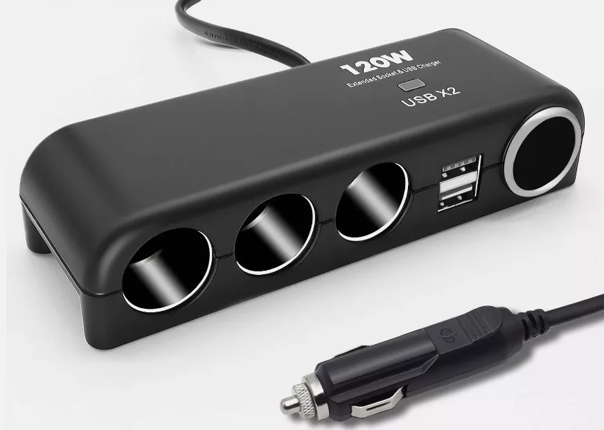 Szivargyújtó elosztó 3-as + 2 USB aljzat + öngyújtó aljzat - 12/24V -max. 120W
