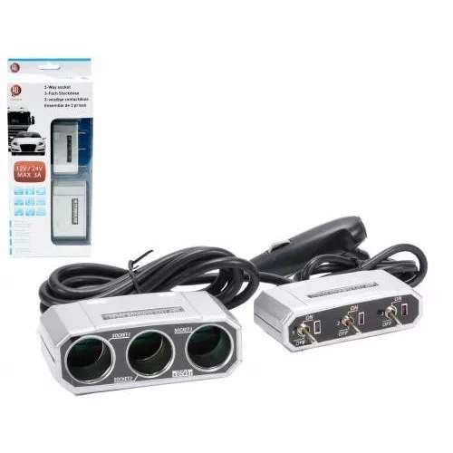 3-as szivargyújtó elosztó, kapcsolható kimenettel.