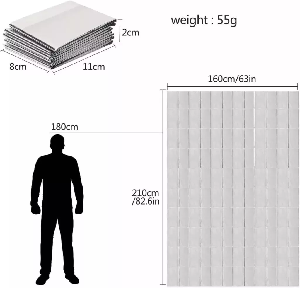 Színe: ezüst – ez a szín visszaveri a hőt, ideális például hipotermia ellen.