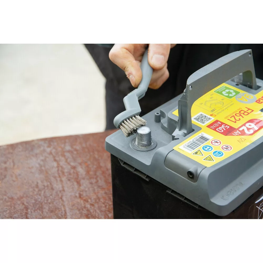 A sárgaréz sörte tökéletes a kis rozsdafoltok eltávolítására, gyújtógyertyákra és akkumulátorbilincsekre.