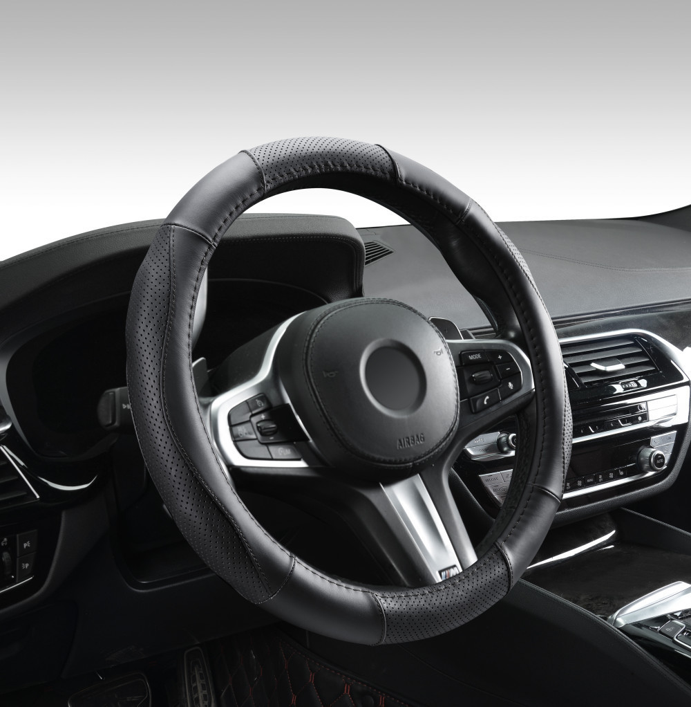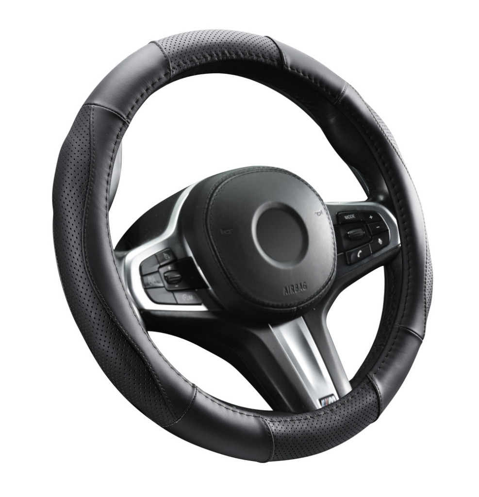 Valódi bőr kormányvédő szellőző lyukacsos mintával fekete színben