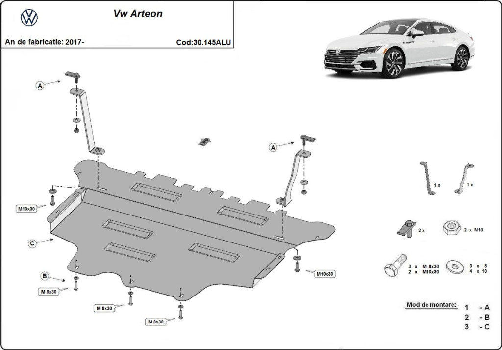 Volkswagen Arteon, 20217- Alumínium Motorvédő lemez
