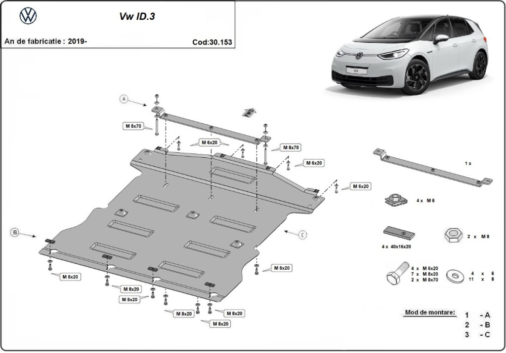 Volkswagen ID.3, 2019- Acél Motorvédő lemez